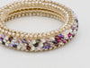 Das Armband aus österreichischen Kristallperlen in Violet reicht von einem leichten Flieder bis hin zu einem satten Lila. Umgeben von japanischen Glasperlen in einem warmen Gold erhalten wir bei diesem Armband einen romantischen und geheimnisvollen Akzent, der Leichtigkeit und Eleganz in jedes Outfit bringt.