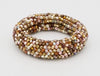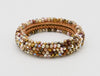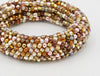Das Zeitlose. Gemischte, farbige japanische Glasperlen mit funkelnden Kristallperlen aus Österreich in zeitlosen und dennoch klassischen Herbst- und Frühjahrstönen. Die Farbpalette reicht von klassischem satten Kastanienbraun über weiche und elegante Cameltöne bis hin zu zarten Roséfarben. Die funkelnden Kristallperlen ergänzen sich perfekt mit einem goldenen und leicht blauen Glitzern.